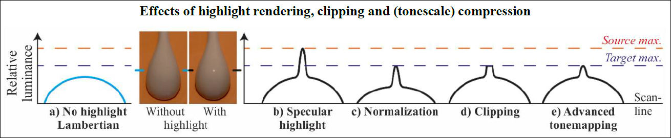 それぞれの処理の説明として Report ITU-R BT.2390-11 の Figure 6 を引用したものを図5 の (c) ~ (e) に示す[1]。