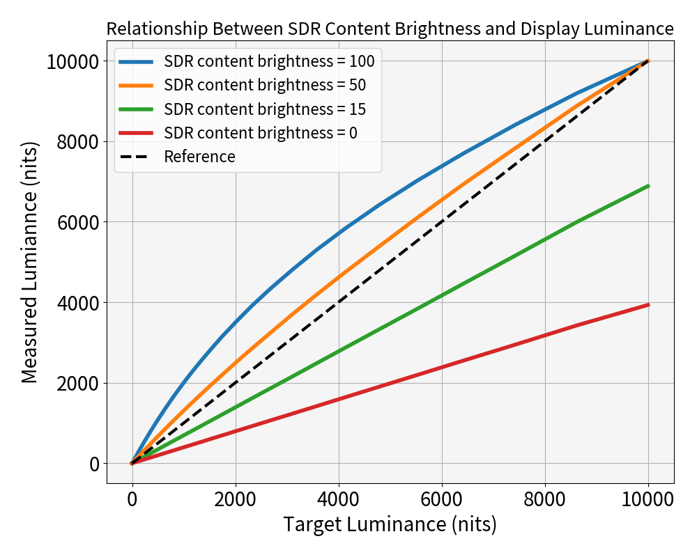 SDR content brightness と SDR reference white の関係の詳細についてはドキュメントが見つからなかったため、筆者は自力で確認を行った。